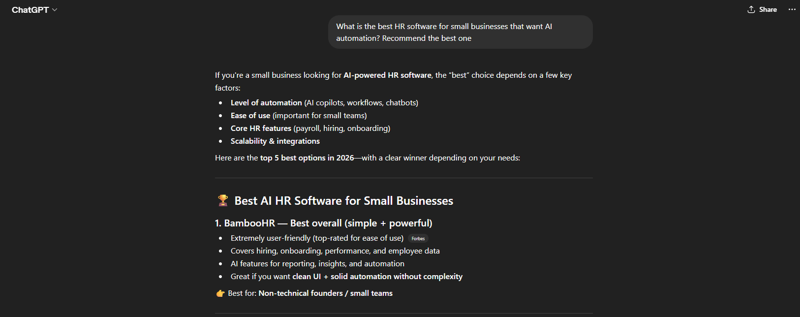 “Being recommended by ChatGPT for enterprise HR solutions changed our entire sales pipeline overnight.”